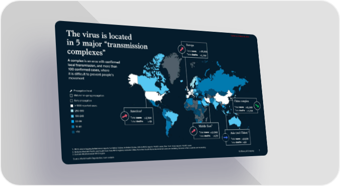 Current as of March 16, 2020 The virus is located in 5 major “transmission Europe cases >45,000 Total deaths complexes” Total >1,700 A complex is an area with confirmed local transmission, and more than 100 confirmed cases, where it is difficult to prevent people’s movement Propagation trend Mature/ on-going propagation Early propagation China complex > 1000 reported cases cases Total >81,000 1 deaths 250-999 Americas Total >3,200 100-249 cases Total >2,300 50-99 deaths Total >40 10-49 3 Middle East <10 cases Total >13,900 2 deaths Asia (excl China) Total >620 cases Total >10,100 deaths 1. WHO data is lagging behind news reports for United States. In United States, CDC & WHO reports >1,600 cases; New York Times reports >3,600 cases Total >110 2. Includes Western Pacific and South-East Asia WHO regions; excludes China; Note that South Korea incremental cases are declining, however other countries are increasing 3. Eastern-Mediterranean WHO region Source: World Health Organization, team analysis McKinsey & Company 7
