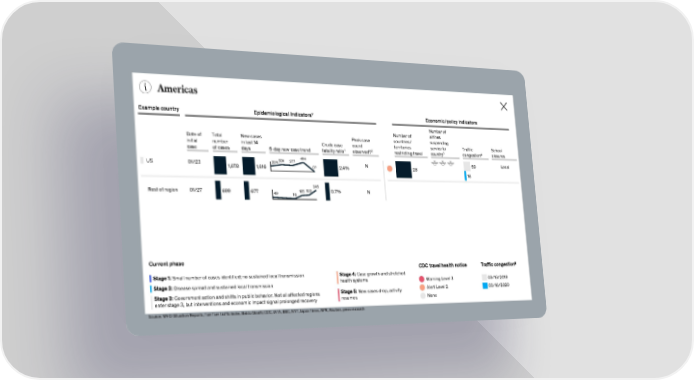 Americas Example country Epidemiological Indicators7 Economic/policy indicators Number of Number of airlines Date of Total New cases Peak case countries/ suspending initial number in last 14 Crude case count territories service to Traffic School 1 2 3 4 case of cases days 5-day new case trend fatality ratio observed? restricting travel country congestion closures 291 277 414 Local US 01/23 224 N 59 5 1,678 1,616 0 2.4% 28 16 245 Rest of region 01/27 699 677 49 105 122 0.7% N 16 Current phase CDC travel health notice Traffic congestion5 Stage 1: Stage 4: Small number of cases identified; no sustained local transmission Case growth and stretched Stage 2: health systems Warning Level 3 03/16/2019 Disease spread and sustained local transmission Stage 5: Alert Level 2 03/16/2020 Stage 3: New cases drop, activity Government action and shifts in public behavior. Not all affected regions resumes None enter stage 3, but interventions and economic impact signal prolonged recovery Source: WHO Situation Reports, TomTom traffic index, Baidu QianXi, CDC, IATA, BBC, NYT, Japan Times, NPR, Reuters, press research McKinsey & Company