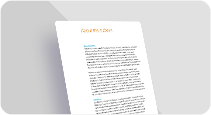 About the authors Vivian Hunt, DBE Vivian Hunt is the Managing Partner for McKinsey & Company’s United Kingdom and Ireland offices and is a Senior Partner of the firm. Vivian previously led the firm’s Pharmaceutical & Medical Products Practice in EMEA, and continues to advise leading companies on a broad range of strategy topics, with a particular focus on performance transformation and organizational development. In addition to her client responsibilities, Vivian is a leader within the firm on leadership and diversity. She frequently speaks on McKinsey & Company’s flagship research and co-authored publications such as: Women Matter, Diversity Matters and The Power of Parity: How advancing women’s equality can add $12 trillion to global growth. Vivian is on the board of several business groups in the UK, including BritishAmerican Business, the CBI London Council, and the Mayor of London’s Business Advisory Board. She is also a member of the Trilateral Commission. Vivian is a trustee of The Henry Smith Charity and is Chair of HRH Prince of Wales’ Business in the Community’s “Seeing is Believing” program as well as a reader for the Queen’s Anniversary Prize. She sits on the Advisory Council of the Tate Modern and the Southbank Centre, as well as Teach First’s Business Leaders Council and on the Board of the US-UK Fulbright Commission. Vivian was appointed a Dame Commander of the Order of the British Empire by Queen Elizabeth II in the UK’s 2018 New Year Honours List for her services to the economy and to women in business. Sara Prince Sara Prince is a Partner in McKinsey & Company’s Atlanta office. She is a core leader in McKinsey’s Consumer and Marketing and Sales Practices with a specific focus on helping clients transform their operating model and capabilities to deliver beyond market growth. Sara has 12 years’ experience serving consumer, travel, transportation and logistics, and financial services clients on growth strategy, commercial capability building, and growth transformation. She has helped clients with a full suite of multi-faceted strategic and commercial issues and leads McKinsey’s efforts to drive commercial excellence transformations with consumer-driven organizations. In the continued pursuit of helping clients broadly in the areas of growth, talent and capability, Sara co-authored McKinsey’s groundbreaking 2015 work, Why Diversity Matters, correlating financial performance and levels of gender and ethnic diversity in a company’s leadership team. Sara has since partnered with a broad variety of global organizations to define their diversity strategy, deliver relevant capability-building programs, and develop advanced analytics approaches to drive desired organizational effectiveness and business outcomes using diversity and inclusion levers. Sara is on the Board of the Georgia region of the American Red Cross. Sundiatu Dixon-Fyle, PhD Sundiatu Dixon-Fyle is an Associate Partner in McKinsey & Company’s London office and the global client development lead in McKinsey’s Inclusion and Diversity Service Line. The service line supports clients in designing and delivering tailored strategies to capture the benefits of diversity as a business performance enabler, through increasing representation of diverse talent and fostering inclusiveness. Sundiatu has 15 years’ experience as a management consultant at the firm, most recently as a Senior Healthcare Expert serving clients in our Health Systems and Services (HSS) and Pharma and Medical Products (PMP) sectors. 33 Delivering through Diversity About the authors