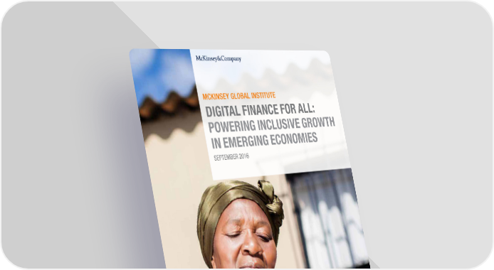 23 including everything from driving taxis to day labor to specialized work in technology. As the global digital economy grows rapidly, digital payments provide a more convenient, low- cost way for individuals and businesses to take advantage of new opportunities. The spur to innovation that digital finance can give is one argument among many for adopting it, and its rapid adoption. Examples are mounting of the countries that have benefited from harnessing digital finance. As a developmental tool, it seems indispensable, a means to securing many ends from reducing poverty and hunger, to improving health, creating good jobs and inclusive economic growth, and reducing inequalities. Digital finance is not a miracle cure for all the world’s ills, but it is within reach, and available now to emerging economies willing and ready to seize its many benefits. ••• Economic development is usually a long journey, but digital finance solutions can radically speed the progress, and at a relatively affordable cost. Imagine the person in a rural area winning back the time spent traveling many miles on foot or by bus to a cash agent, and being able to work instead. Think of how many more small businesses might expand if they had access to credit. Picture the smallholder farmers who can finally get loans to buy the seeds, fertilizer, and farming tools needed to improve crop yields and boost incomes. And imagine, too, the enormous new business opportunities for banks, telecoms companies, fintech players, retailers, or any company that harnesses the low costs of transacting digitally to serve a much broader customer base of individuals and businesses profitably. Digitizing finance will be a multiyear effort for many countries but the sooner they start, the faster the rewards will come, in the form of higher growth, greater innovation, and more inclusion. The good news is that the digital infrastructure needed already exists and is being further improved. Billions of people across emerging economies possess the mobile handset that can connect directly into the national payments system. They are just waiting for governments and businesses to wire up the infrastructure and create the products they need. 23 A labor market that works: Connecting talent with opportunity in a digital age, McKinsey Global Institute, June 2015. McKinsey Global Institute Digital finance for all: Powering inclusive growth in emerging economies 15