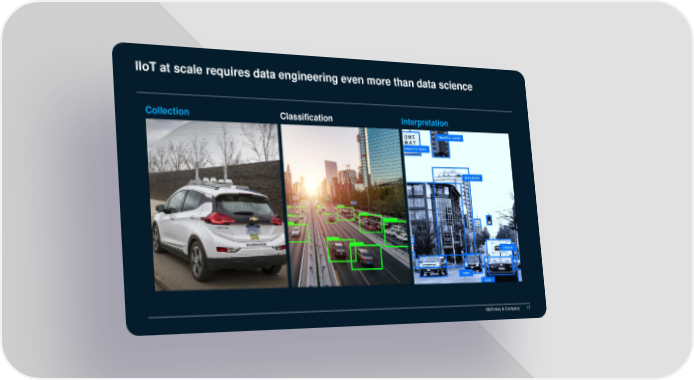 IIoT at scale requires data engineering even more than data science Collection Classification Interpretation McKinsey & Company 17 SOURCE:AutoNews, AWS,, Might Ai