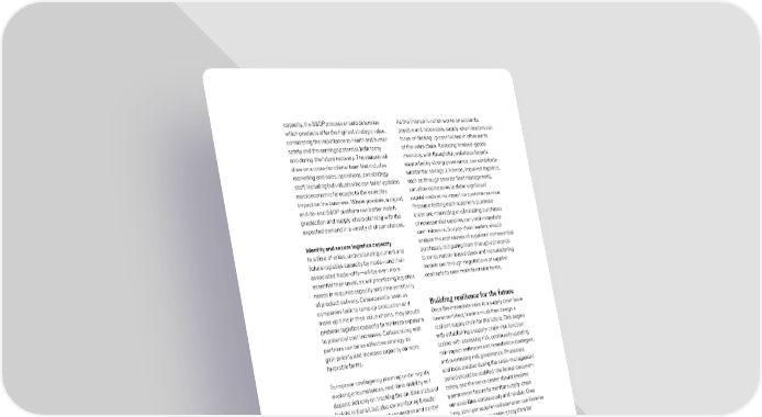 capacity, the S&OP process should determine As the finance function works on accounts which products offer the highest strategic value, payable and receivable, supply-chain leaders can considering the importance to health and human focus on freeing up cash locked in other parts safety and the earnings potential, both today of the value chain. Reducing finished-goods and during the future recovery. The analysis will inventory, with thoughtful, ambitious targets draw on a cross-functional team that includes supported by strong governance, can contribute marketing and sales, operations, and strategy substantial savings. Likewise, improved logistics, staff, including individuals who can tailor updated such as through smarter fleet management, macroeconomic forecasts to the expected can allow companies to defer significant impact on the business. Where possible, a digital, capital costs at no impact on customer service. end-to-end S&OP platform can better match Pressure testing each supplier’s purchase production and supply-chain planning with the order and minimizing or eliminating purchases expected demand in a variety of circumstances. of nonessential supplies can yield immediate cash infusions. Supply-chain leaders should Identify and secure logistics capacity analyze the root causes of suppliers’ nonessential In a time of crisis, understanding current and purchases, mitigating them through adherence future logistics capacity by mode—and their to consumption-based stock and manufacturing associated trade-offs—will be even more models and through negotiations of supplier essential than usual, as will prioritizing logistics contracts to seek more favorable terms. needs in required capacity and time sensitivity of product delivery. Consequently, even as companies look to ramp up production and Building resilience for the future make up time in their value chains, they should Once the immediate risks to a supply chain have prebook logistics capacity to minimize exposure been identified, leaders must then design a to potential cost increases. Collaborating with resilient supply chain for the future. This begins partners can be an effective strategy to with establishing a supply-chain-risk function gain priority and increase capacity on more tasked with assessing risk, continually updating favorable terms. risk-impact estimates and remediation strategies, and overseeing risk governance. Processes To improve contingency planning under rapidly and tools created during the crisis-management evolving circumstances, real-time visibility will period should be codified into formal documen- depend not only on tracking the on-time status of tation, and the nerve center should become freight in transit but also on monitoring broader a permanent fixture to monitor supply-chain changes, such as airport congestion and border vulnerabilities continuously and reliably. Over closings. Maintaining a nimble approach to time, stronger supplier collaboration can likewise logistics management will be imperative in reinforce an entire supplier ecosystem for rapidly adapting to any situational or greater resilience. environmental changes. During this process, digitizing supply-chain Manage cash and net working capital management improves the speed, accuracy, As the crisis takes its course, constrained and flexibility of supply-risk management. By supply chains, slow sales, and reduced margins building and reinforcing a single source of truth, will combine to add even more pressure on a digitized supply chain strengthens capabilities earnings and liquidity. Businesses have a habit in anticipating risk, achieving greater visibility of projecting optimism; now they will need a and coordination across the supply chain, and strong dose of realism so that they can free up managing issues that arise from growing product cash. Companies will need all available internal complexity. For example, Exhibit 3 shows how a forecasting capabilities to stress test their capital digitally enabled clustering of potential suppliers requirements on weekly and monthly bases. shows the capabilities they have in common. 80 What now? Ten actions to emerge stronger in the next normal September 2020