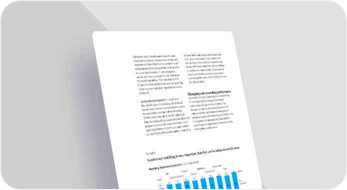 field sales reps for inside sales roles, including behavior that would be required to keep them those that require an increased use of data and moving in a more focused way. Leaders who analytics and those that provide customers with are working on these skills can spend a small technical expertise via a website’s chat function. amount of their learning time in formal settings In our survey of leaders, IT, marketing, and (in classroom, online, or with a coach) and the supply chain were among the most cited areas majority of it working on real project-based for specific upskilling. That holds true for HR: business problems (which the COVID-19 crisis 61 percent of respondents believe that upskilling naturally provided). will be very or moderately important in the area (Exhibit 2). Managing and rewarding performance — Leadership development. In response to The COVID-19 crisis is speeding up needed shifts the current crisis, the slow pace of corporate in how organizations manage and reward bureaucracy has been replaced by clear goals, performance. As our previous research has focused teams, and rapid decision making. shown, the majority of business leaders don’t CHROs have a key role to play in making sure believe that their performance-management that the change sticks. Leadership-development system accurately identifies top performers—and programs can provide support for faster, more the majority of employees don’t feel that the agile organizations. In particular, organizations performance-management process accurately can identify the three to five shifts in leadership reflects their contributions. Web <2020> Exhibit 2 Exhibit <2> of <3> Leaders say reskilling is very important, but they are focusing on certain areas. Leaders say reskilling is very important, but they are focusing on certain areas. Reskilling importance by function, % of respondents¹ Hˆ inance ‚arketing Supply chain ”• …egal ’ommunications Quality “rocurement Sales 1‰ Œ Ž Ž Œ Œ Œ ‘ Š „nsure 1 ‰‹ ‰Œ ŠŒ ŠŽ ‹1 ƒery ‹ ‹‘ important Š ‹‰ ‹ ŠŒ ŠŽ ‹ Š1 ‰ ‚oderately ‰ important ‹1 ŠŠ ‰ 1 ‰ 1 €ot 1Š 1‹ 1‹ 1Š important …†SS ‚‡ˆ† 1Question: How important will reskilling employees be in this function? Survey of chief officers and functional leaders across industries n 1 igures may not sum to 1 % because of rounding 54 What now? Ten actions to emerge stronger in the next normal September 2020