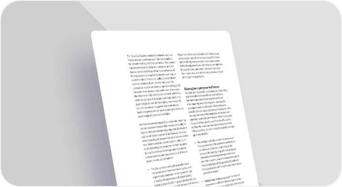 For its part, Zappos created a customer-service Keep in mind that some people view their purpose line to answer questions and help find solutions as caring and providing for those closest to them— for people dealing with the pandemic. The kicker? and practically everyone else in your organization Callers need not be Zappos customers, and the will be feeling anxiety around these issues right now. topics can be anything—from food delivery and Be sure to tailor your communication to address finding essential supplies to literally anything on their needs, too, so that this time takes less of a toll a caller’s mind. To be sure, with business slower on their personal purpose. and call volumes down, the hotline gives the company’s customer-service reps something to do between their regular calls. Yet it also offers reps Reimagine a purpose-led future the chance to help others and connect with them, As much as the pandemic is testing your leadership which is one way that people can help satisfy the right now, the real test with purpose starts as psychological need for belonging. And research the immediate crisis fades and the hard work around job design suggests that even simple of reimagining and reforming your business for tasks are perceived as more meaningful when our a postpandemic world begins. Embedding and psychological needs are satisfied. activating individual purpose more thoroughly in the various elements of the employee experience will As these examples suggest, purpose and meaning take hard work and commitment. While it’s too soon can be valuable considerations in adjusting day-to- to say what best practice will look like, it’s safe to day routines or even in designing roles. But even if say that the more you can connect purpose to the you’re not ready to go as far as Zappos, there are following areas, the more likely the benefits will build other ways to give people license to be purposeful upon one another: now. When possible, create opportunities, such as the following, for people to live their purpose — Recruiting. Explicitly connect the purpose of during this time by tailoring projects, support, the organization to the personal contributions communication, and coaching to suit different an individual in the role could bring to the needs, values, and situations: company. By backing it up with real, purpose- rich stories from hiring managers who have — F or the up-and-coming leader who views seen this in action, you will increase the odds of her purpose as freedom to learn, grow, and attracting people whose purpose fits well with experiment, empower her to try new things the organization and the work, and help them be in service of customers and stakeholders, productive sooner. keeping projects within guardrails but without multiple layers of oversight. Be sure to frame any — Onboarding. Make purpose part of the first negative outcomes as learning, not failure. conversation with both the manager and the team to build a shared vocabulary. Start people — For a team member who values preserving off right by helping them reflect on how the and upholding tradition, invite him to help plan work and the organization connect with their important organizational or community rituals own purpose. In fact, applied research finds (like team events or company days). Such events that encouraging new employees to focus on create connection and can be critical to build expressing personal values at work allowed and maintain culture. them to significantly outperform peers, be more satisfied at work, and increased retention by — For colleagues whose purpose is aligned with 7 more than 30 percent. equality and opportunity for others, consider connecting them to the forefront of company — Feedback and performance management. initiatives and projects where your organization The value of strengths-based feedback is is helping the communities in which you operate. well known; purpose is a natural extension 7 D aniel M. Cable, Francesca Gino, and Bradley R. Staats, “Breaking them in or eliciting their best? Reframing socialization around newcomers’ authentic self-expression,” Administrative Science Quarterly, Volume 58, Number 1, pp. 1–36, February 8, 2013, journals.sagepub.com. 142 What now? Ten actions to emerge stronger in the next normal September 2020