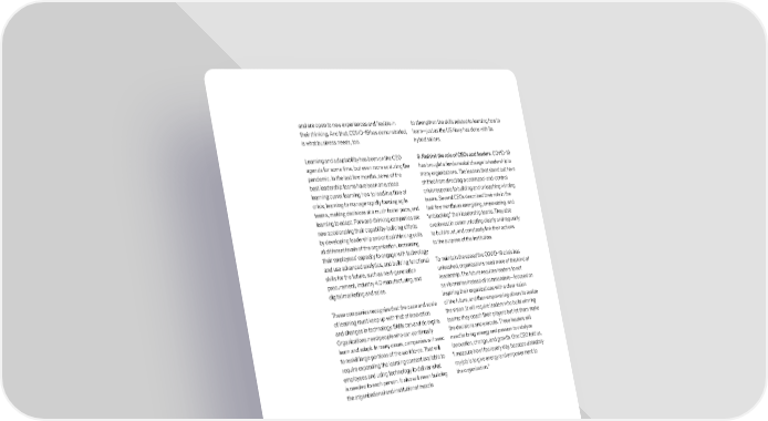 and are open to new experiences and flexible in to strengthen the skills related to learning how to their thinking. And that, COVID-19 has demonstrated, learn—just as the US Navy has done with its is what business needs, too. hybrid sailors. Learning and adaptability has been on the CEO 9. Rethink the role of CEOs and leaders. COVID-19 agenda for some time, but even more so during the has brought a fundamental change in leadership in pandemic. In the last few months, some of the many organizations. The leaders that stand out have best leadership teams have been on a steep shifted from directing a command-and-control learning curve: learning how to lead in a time of crisis response to building and unleashing winning crisis, learning to manage rapidly forming agile teams. Several CEOs described their role in the teams, making decisions at a much faster pace, and last few months as energizing, empowering, and learning to adapt. Forward-thinking companies are “unblocking” their leadership teams. They also now accelerating their capability-building efforts overinvest in communicating clearly and regularly by developing leadership and critical thinking skills to build trust, and constantly link their actions at different levels of the organization, increasing to the purpose of the institution. their employees’ capacity to engage with technology and use advanced analytics, and building functional To maintain the speed the COVID-19 crisis has skills for the future, such as next-generation unleashed, organizations need more of this kind of procurement, Industry 4.0 manufacturing, and leadership. The future requires leaders to act digital marketing and sales. as visionaries instead of commanders—focused on inspiring their organizations with a clear vision These companies recognize that the pace and scale of the future, and then empowering others to realize of learning must keep up with that of innovation the vision. It will require leaders who build winning and changes in technology. Skills can and do expire. teams; they coach their players but let them make Organizations need people who can continually the decisions and execute. These leaders will learn and adapt. In many cases, companies will need need to bring energy and passion to catalyze to reskill large portions of the workforce. That will innovation, change, and growth. One CEO told us, require expanding the learning content available to “I measure how I feel every day, because ultimately employees and using technology to deliver what my job is to give energy and empowerment to is needed to each person. It also will mean building the organization.” the organizational and institutional muscle Skills can and do expire. Organizations need people who can continually learn and adapt. Ready, set, go: Reinventing the organization for speed in the post-COVID-19 era 27