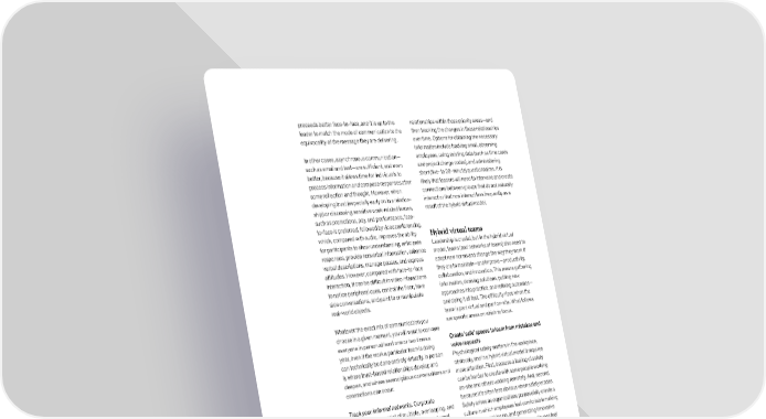 proceeds better face-to-face, and it is up to the relationships within those priority areas—and leader to match the mode of communication to the then tracking the changes in those relationships equivocality of the message they are delivering. over time. Options for obtaining the necessary information include tracking email, observing In other cases, asynchronous communication— employees, using existing data (such as time cards such as email and text—are sufficient, and even and project charge codes), and administering better, because it allows time for individuals to short (five- to 20-minute) questionnaires. It is process information and compose responses after likely that leaders will need to intervene and create some reflection and thought. However, when connections between groups that do not naturally developing trust (especially early on in a relation- interact or that now interact less frequently as a ship) or discussing sensitive work-related issues, result of the hybrid virtual model. such as promotions, pay, and performance, face- to-face is preferred, followed by videoconferencing, which, compared with audio, improves the ability Hybrid virtual teams for participants to show understanding, anticipate Leadership is crucial, but in the hybrid virtual responses, provide nonverbal information, enhance model, teams (and networks of teams) also need to verbal descriptions, manage pauses, and express adopt new norms and change the way they work if attitudes. However, compared with face-to-face they are to maintain—and improve—productivity, interaction, it can be difficult in video interactions collaboration, and innovation. This means gathering to notice peripheral cues, control the floor, have information, devising solutions, putting new side conversations, and point to or manipulate approaches into practice, and refining outcomes— real-world objects. and doing it all fast. The difficulty rises when the team is part virtual and part on-site. What follows Whatever the exact mix of communication you are specific areas on which to focus. choose in a given moment, you will want to convene everyone in person at least one or two times a Create ‘safe’ spaces to learn from mistakes and year, even if the work a particular team is doing voice requests can technically be done entirely virtually. In person Psychological safety matters in the workplace, is where trust-based relationships develop and obviously, and in a hybrid virtual model it requires deepen, and where serendipitous conversations and more attention. First, because a feeling of safety connections can occur. can be harder to create with some people working on-site and others working remotely. And, second, Track your informal networks. Corporate because it’s often less obvious when safety erodes. organizations consist of multiple, overlapping, and Safety arises as organizations purposefully create a intersecting social networks. As these informal culture in which employees feel comfortable making networks widen and deepen, they mobilize talent mistakes, speaking up, and generating innovative and knowledge across the enterprise, facilitating ideas. Safety also requires helping employees feel and informing cultural cohesiveness while supported when they request flexible operating helping to support cross-silo collaboration and approaches to accommodate personal needs. knowledge sharing. Mind the time-zone gaps Because the hybrid virtual model reduces face-to- The experience of a hybrid virtual team in the face interaction and the serendipitous encounters same time zone varies significantly from a hybrid that occur between people with weak ties, social virtual team with members in multiple time networks can lose their strength. To counter that zones. Among other ills, unmanaged time-zone risk, leaders should map and monitor the informal differences make sequencing workflows more networks in their organization with semiannual difficult. When people work in different time refreshes of social-network maps. Approaches zones, the default tends toward asynchronous include identifying the functions or activities where communications (email) and a loss of real-time connectivity seems most relevant and then mapping connectivity. Equally dysfunctional is asking or Reimagining the postpandemic workforce 49