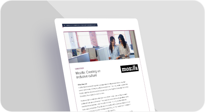 45 | WOMEN IN THE WORKPLACE: A ROAD MAP TO GENDER EQUALITY CASE STUDY Mozilla: Creating an inclusive culture What they did In 2016, Mozilla learned through focus groups and an employee experience survey that women were having challenging workplace experiences. The survey results suggested that Mozilla could help improve women’s experiences by rewriting their Community Participation Guidelines, the company’s code of conduct. Mozilla wanted to understand what was missing from this document, so they convened additional focus groups of women. The groups recommended that the guidelines clearly describe who is protected under the code of conduct, including people of different races, ages, and genders. They also recommended providing examples of good and bad behaviors and explaining when and how to use the guidelines, how to report incidents of harassment or bullying, and what to expect after reporting. Mozilla edited their code of conduct accordingly and ran an internal education campaign to make sure that employees knew about the changes and took them seriously. Outcomes After publicizing the changed code of conduct, Mozilla’s next engagement survey showed that women felt better about the company’s inclusiveness and stance on harassment. Fourteen percent more women believed that harassment and bullying are not tolerated by Mozilla, 15 percent more women felt safe reporting harassment and bullying, and 10 percent more women believed that people treat one another with respect at Mozilla.